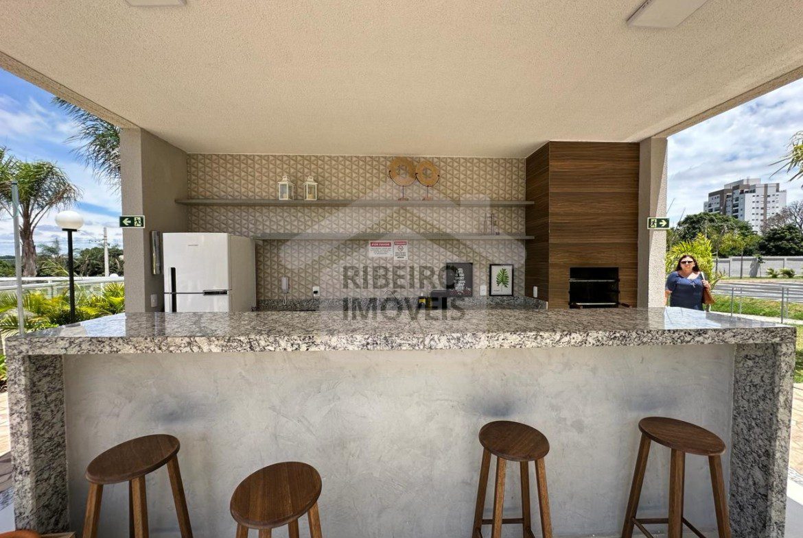 Piscina, playground, salão de festas com churrasqueira, quadra poliesportiva,