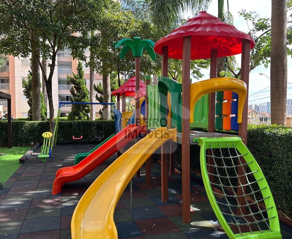 Áreas de lazer: churrasqueira, quadra poliesportiva, playground, academia, espaço gourmet, salão de jogos, espaço kids, espaço mulher, espaço teen e piscina.