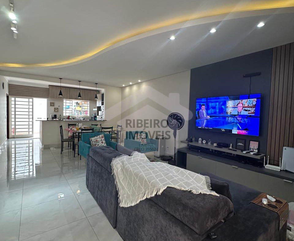 Vendo excelente casa térrea com 3 dormitórios, sendo 1 suíte com closet, banheiro social, sala de estar, sala de jantar, cozinha e lavandeira. Área gourmet com churrasqueira e banheiro externo. Piscina aquecida com cascata. Placa solar fotovoltaica. Acendimento das luzes automatizadas. Garagem para 3 carros. Armários planejados no closet da suíte, cozinha, um dormitório, sala com painel e área gourmet com planejado. Ar condicionado em todos os dormitórios.