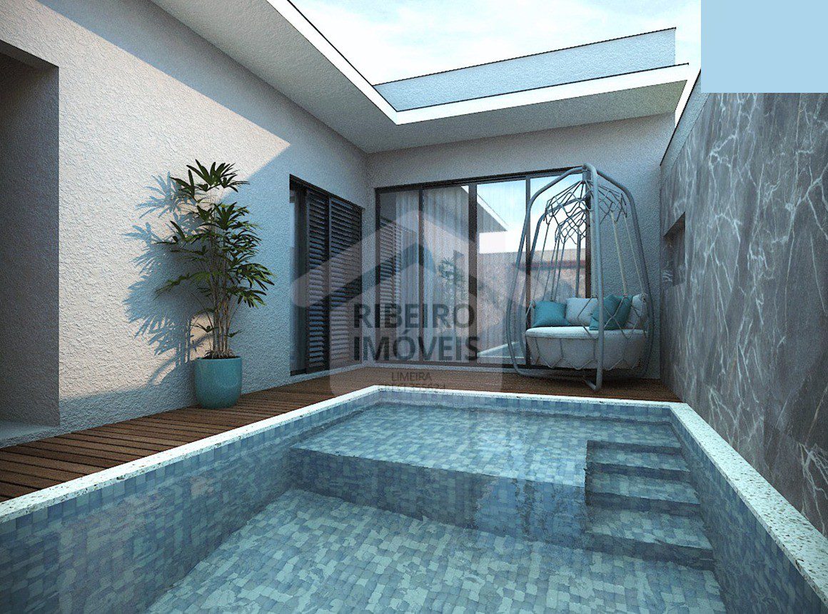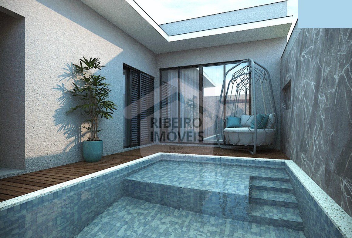 Sala de estar, sala de jantar, cozinha, lavabo, área gourmet com churrasqueira, piscina, lavabo da piscina e área de serviço.
