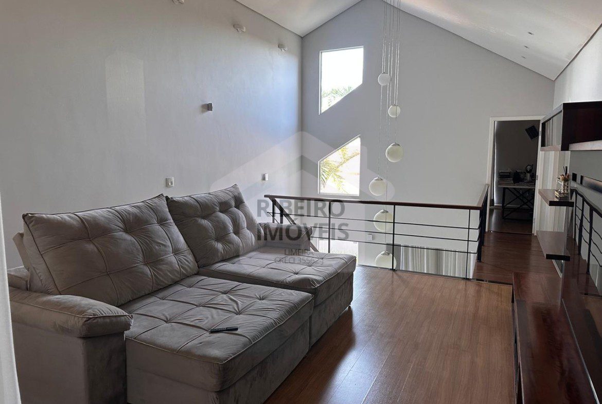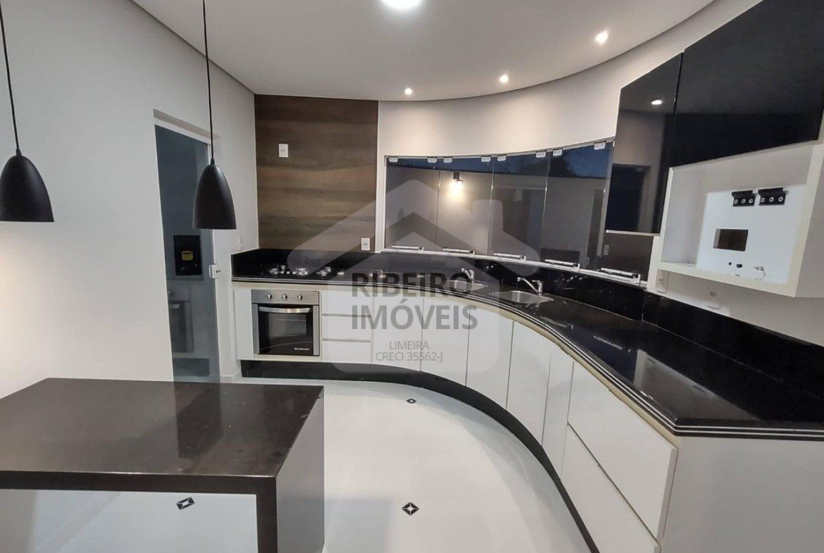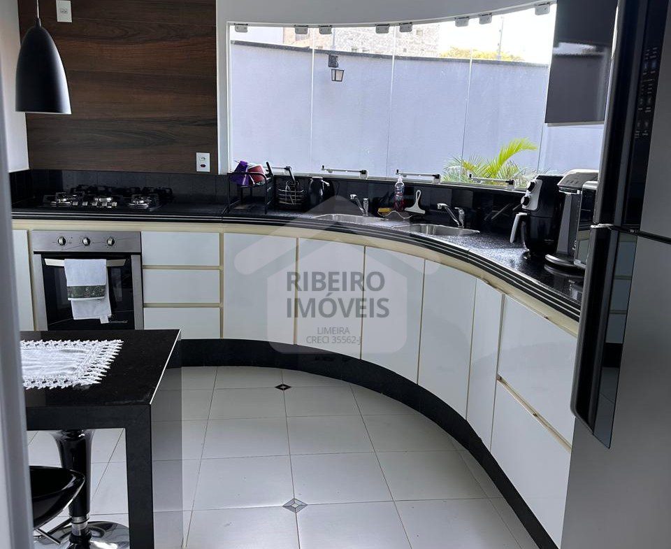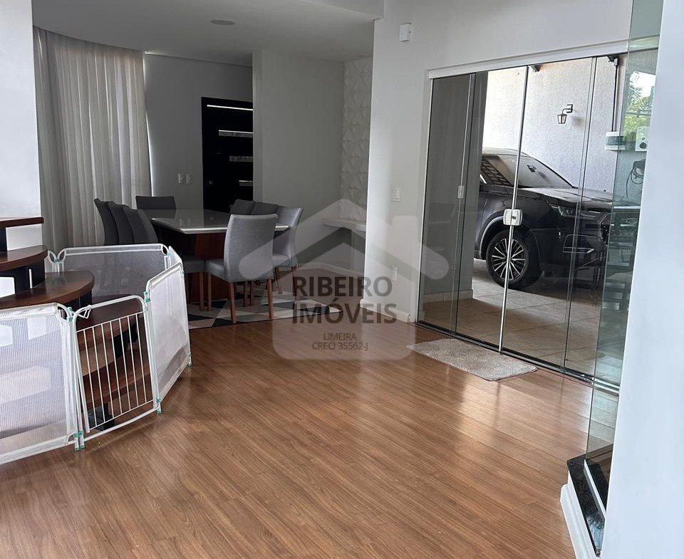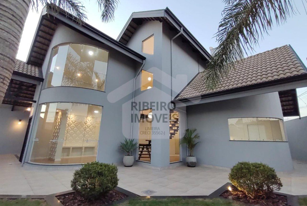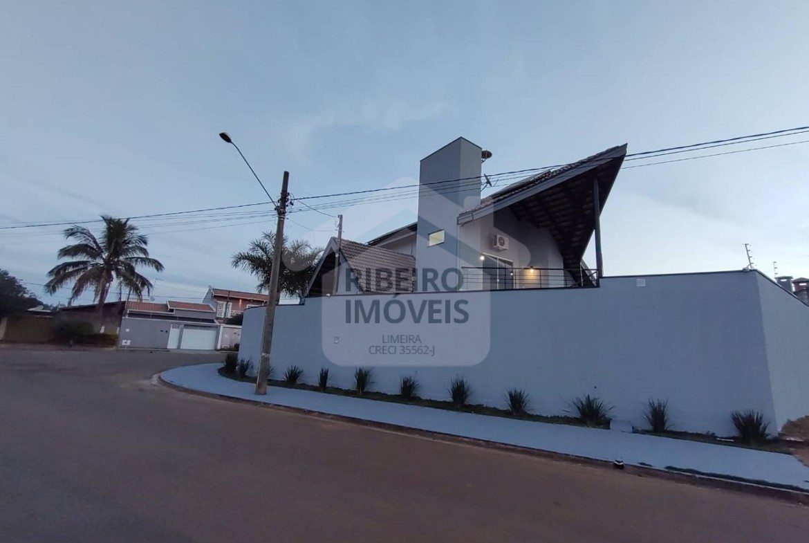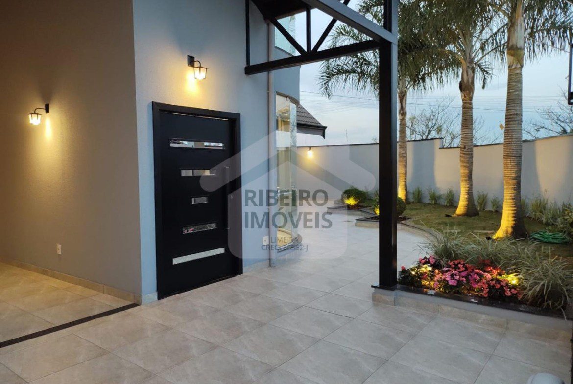 3 dormitórios, sendo 1 suíte, escritório, sala de estar, sala de jantar, lavabo, home theater no piso superior, cozinha , 1 banheiro social, 1 banheiro externo, lavanderia, garagem para 2 carros e área gourmet com churrasqueira de alvenaria.
