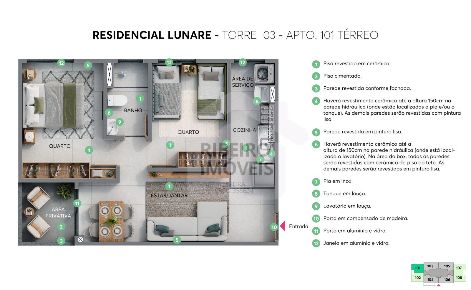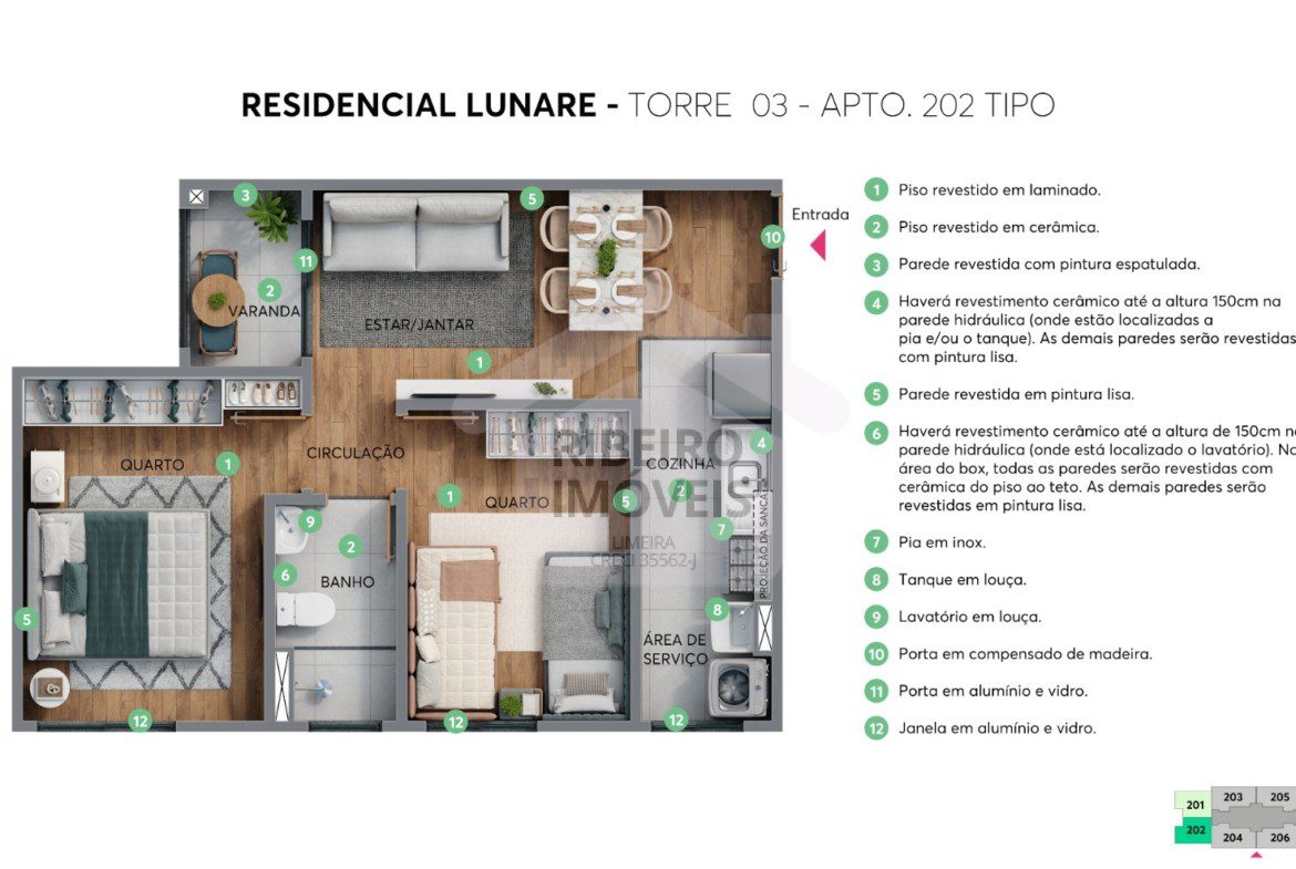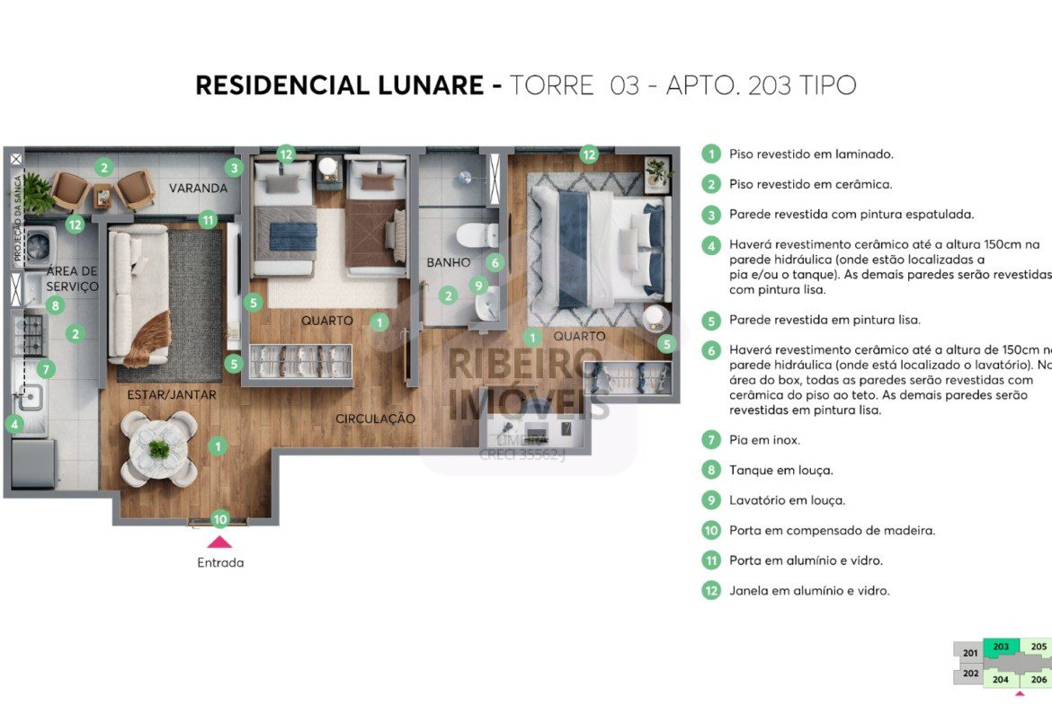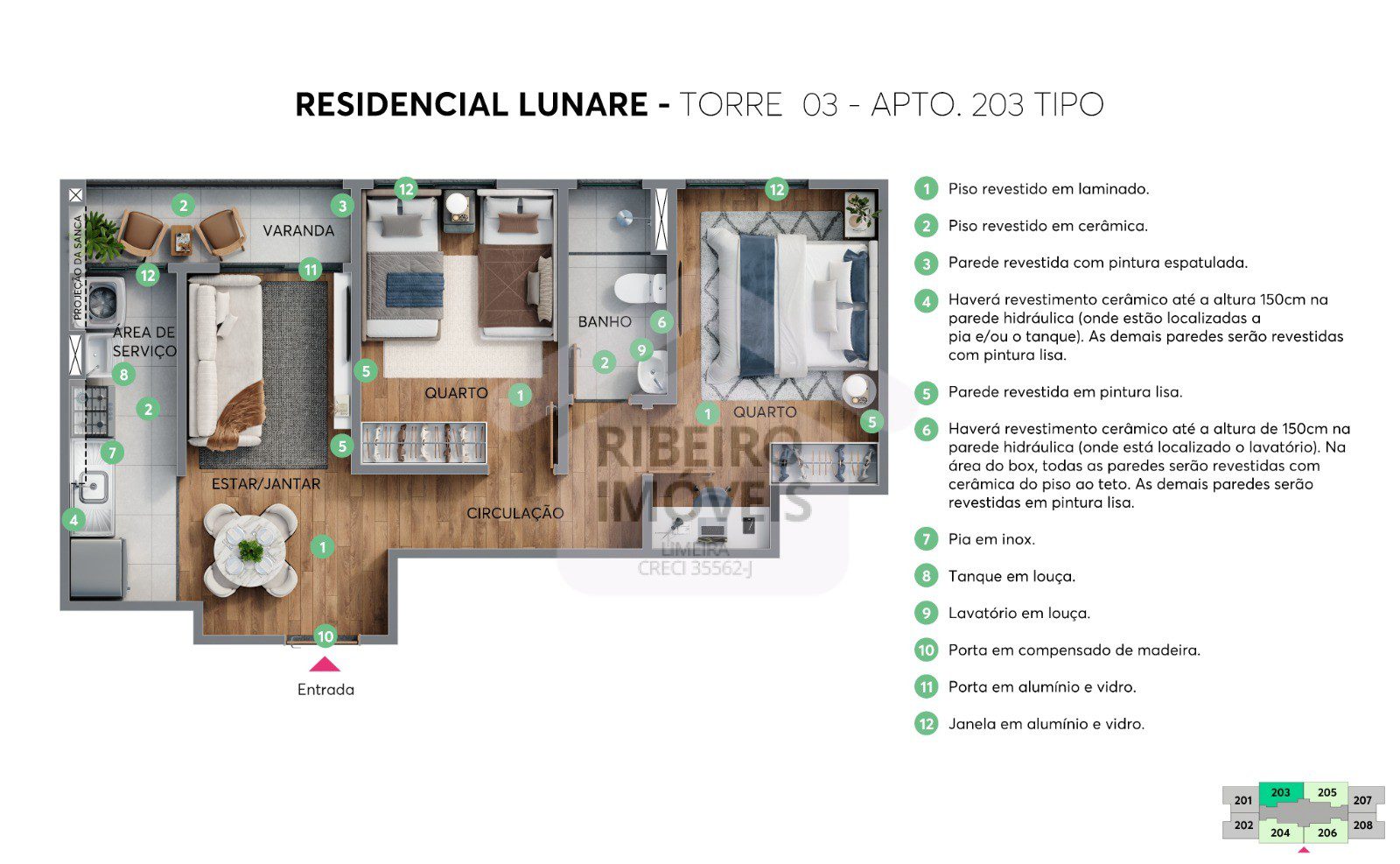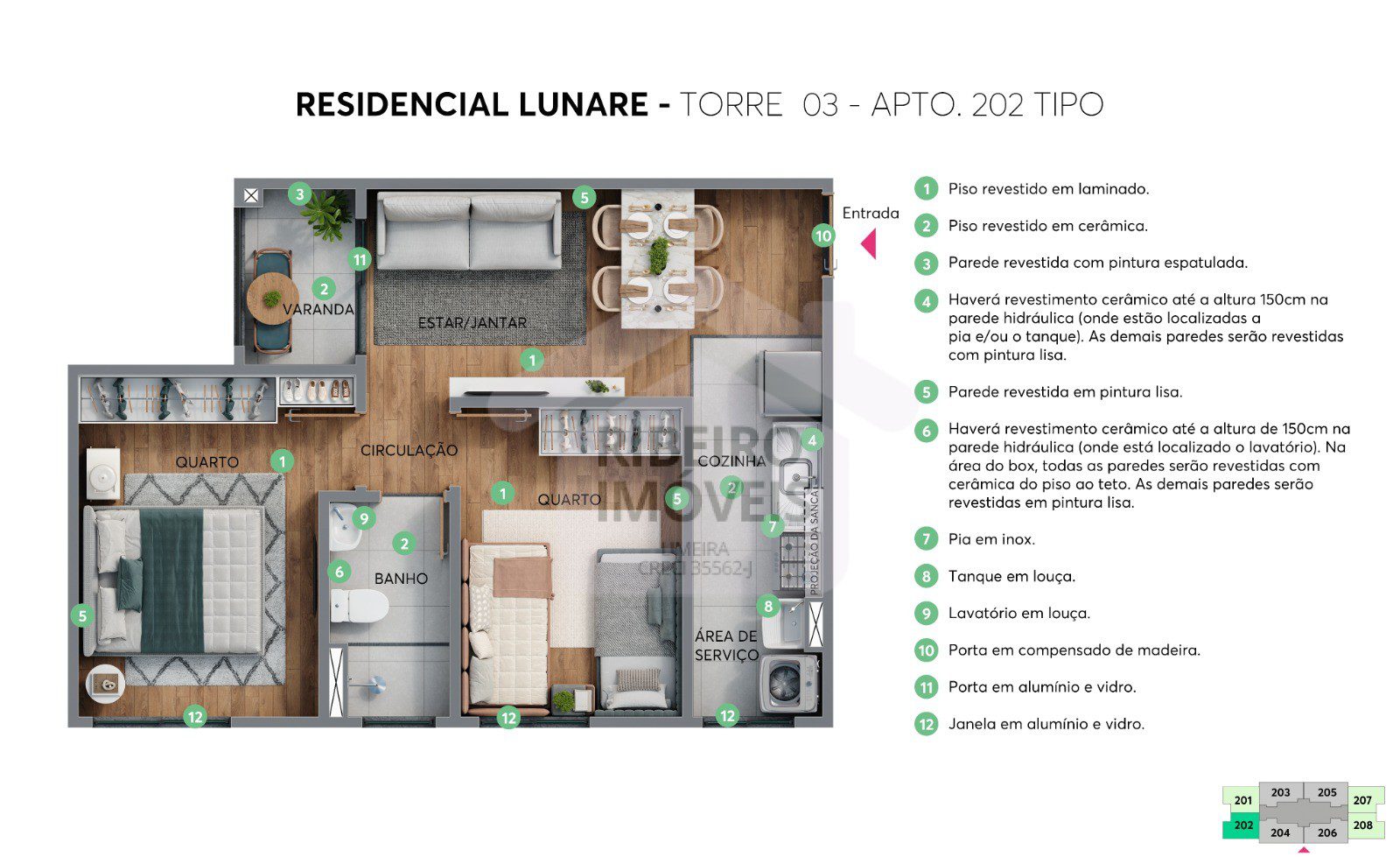 – 2 dormitórios 45,18m2 (planta de ponta)