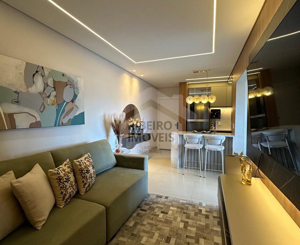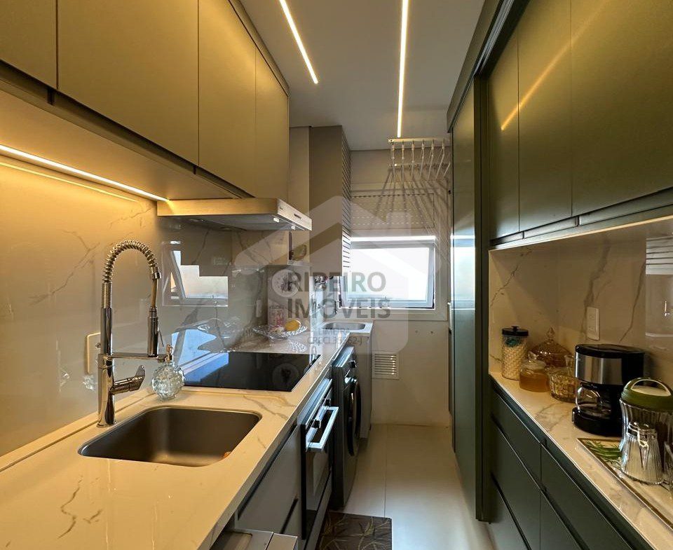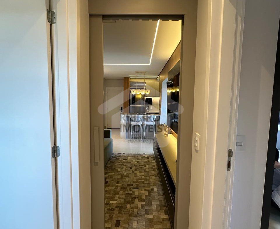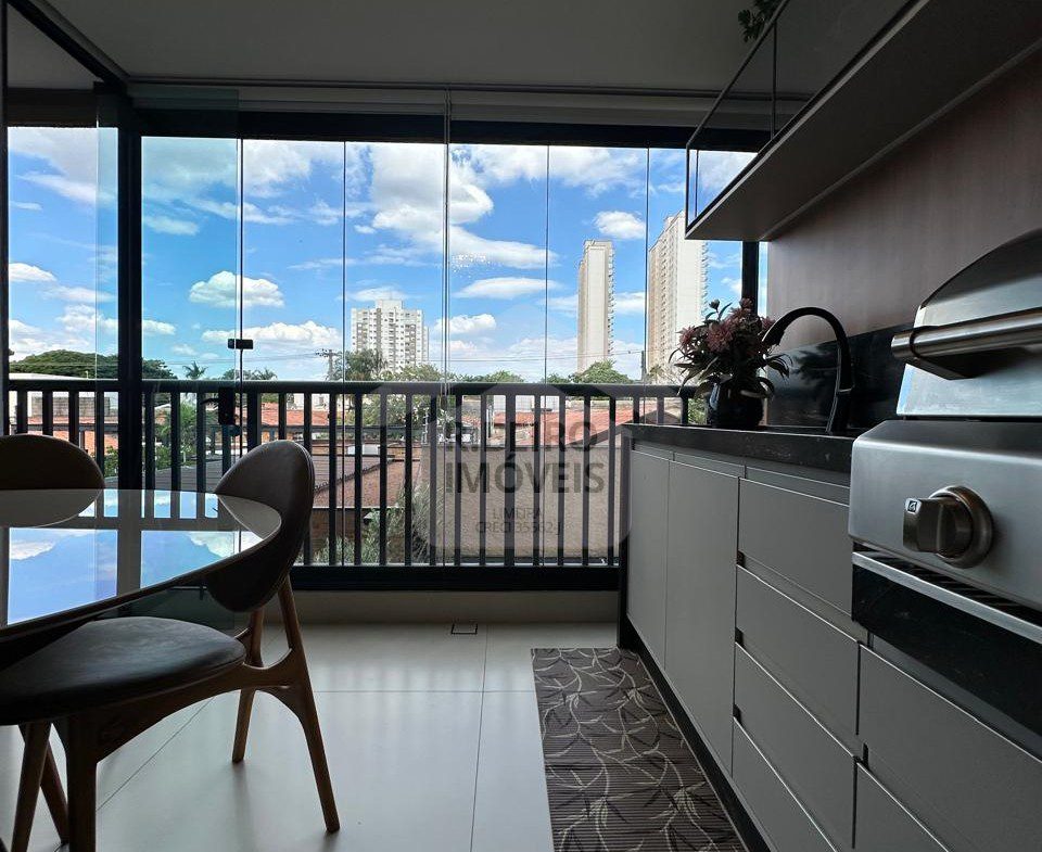 69 m2, 2 dormitórios, sendo 1 suíte, elevador, varanda com churrasqueira à gás e pia, fechamento de vidro na varanda.