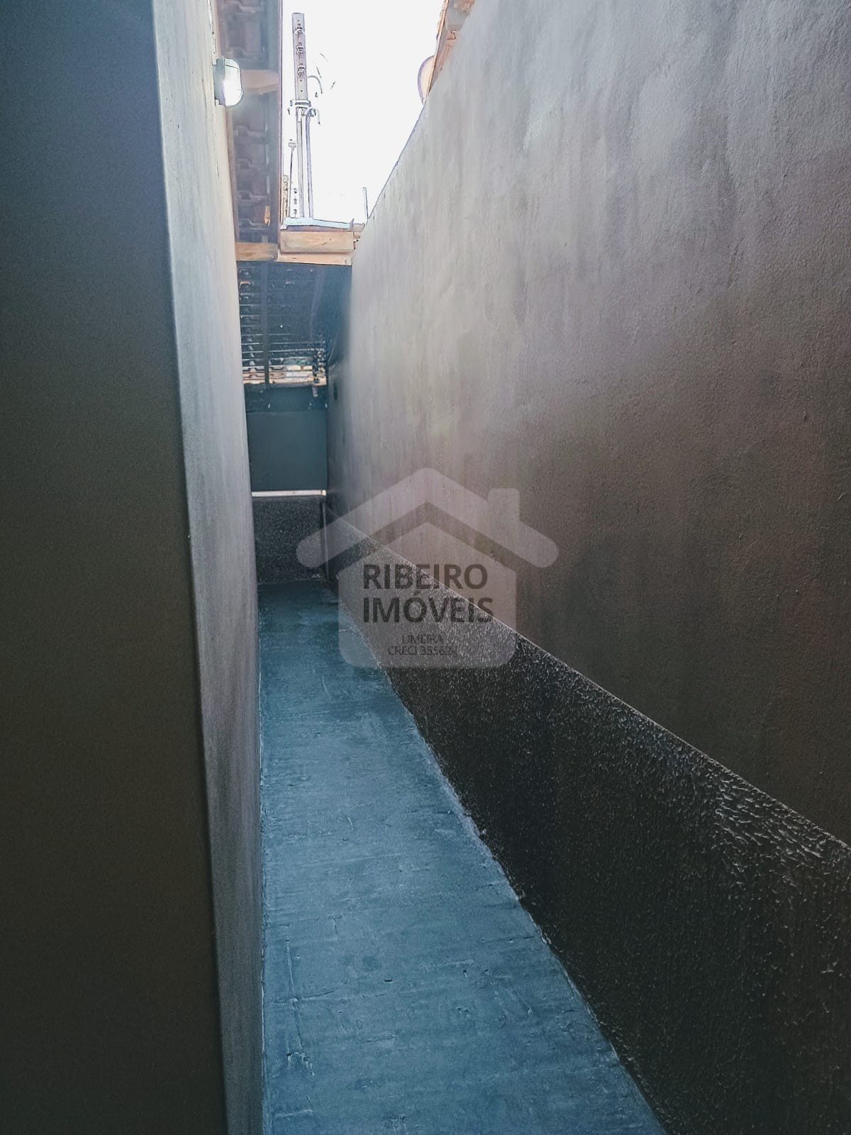 Telhado com manta térmica, laje de alvenaria, alçapão e piso porcelanato.