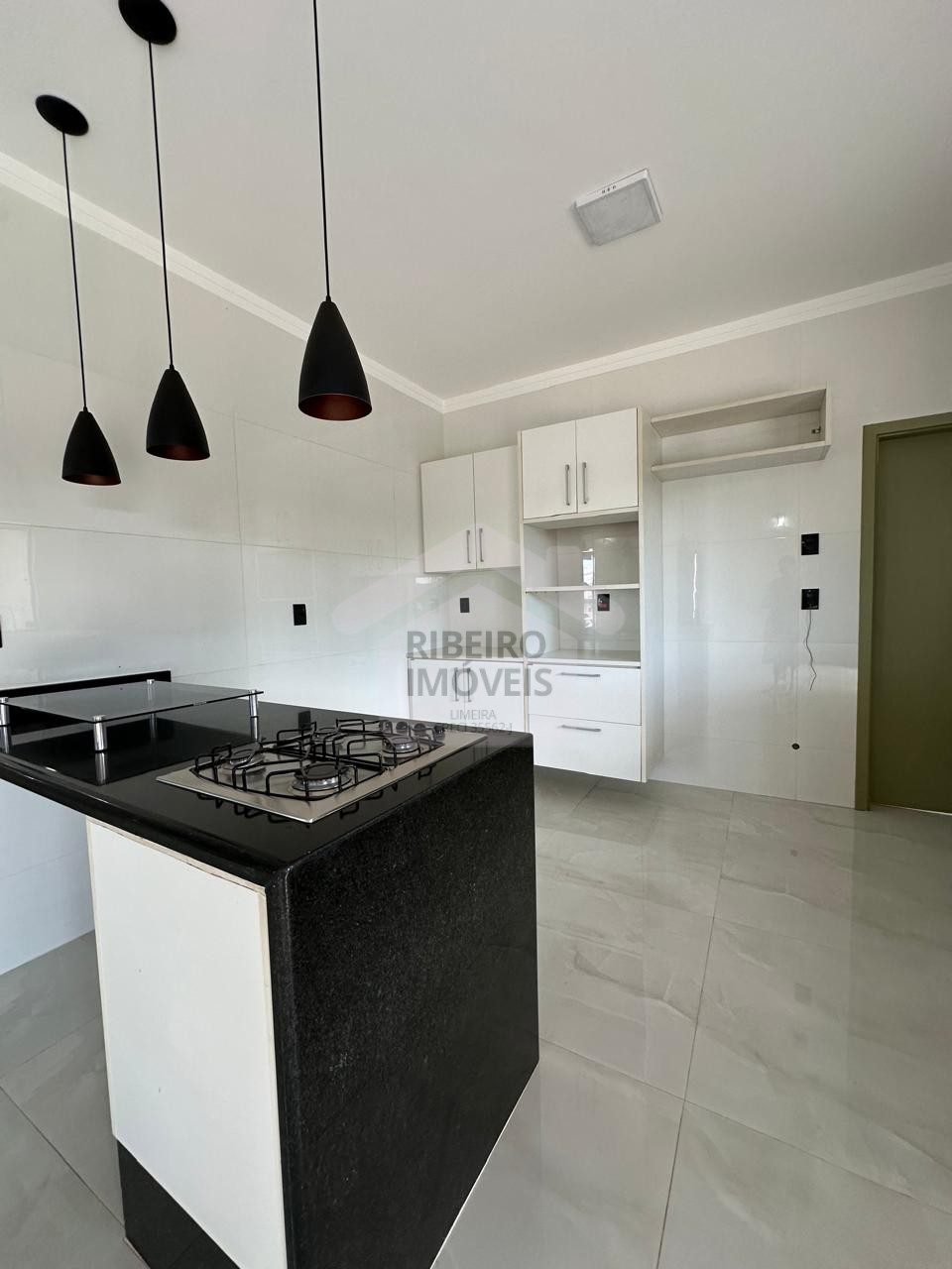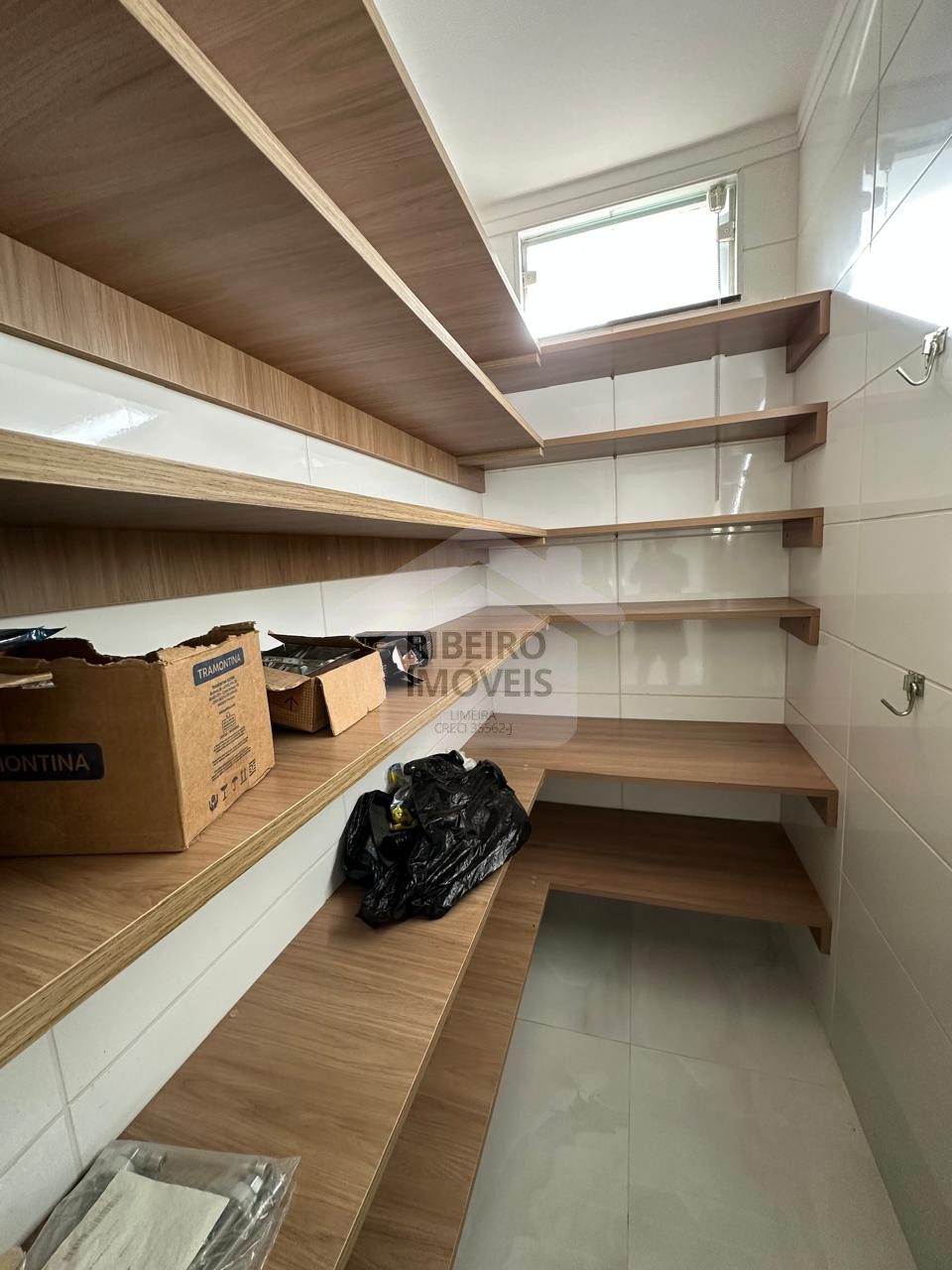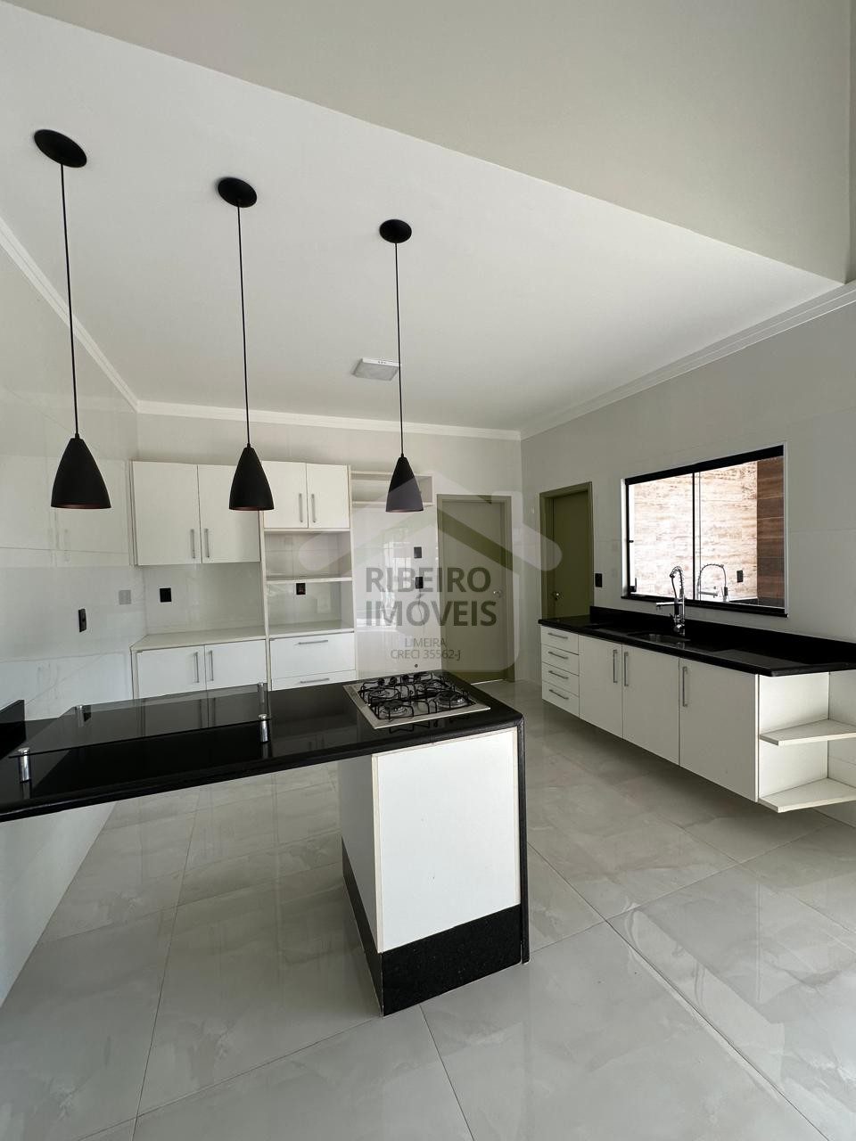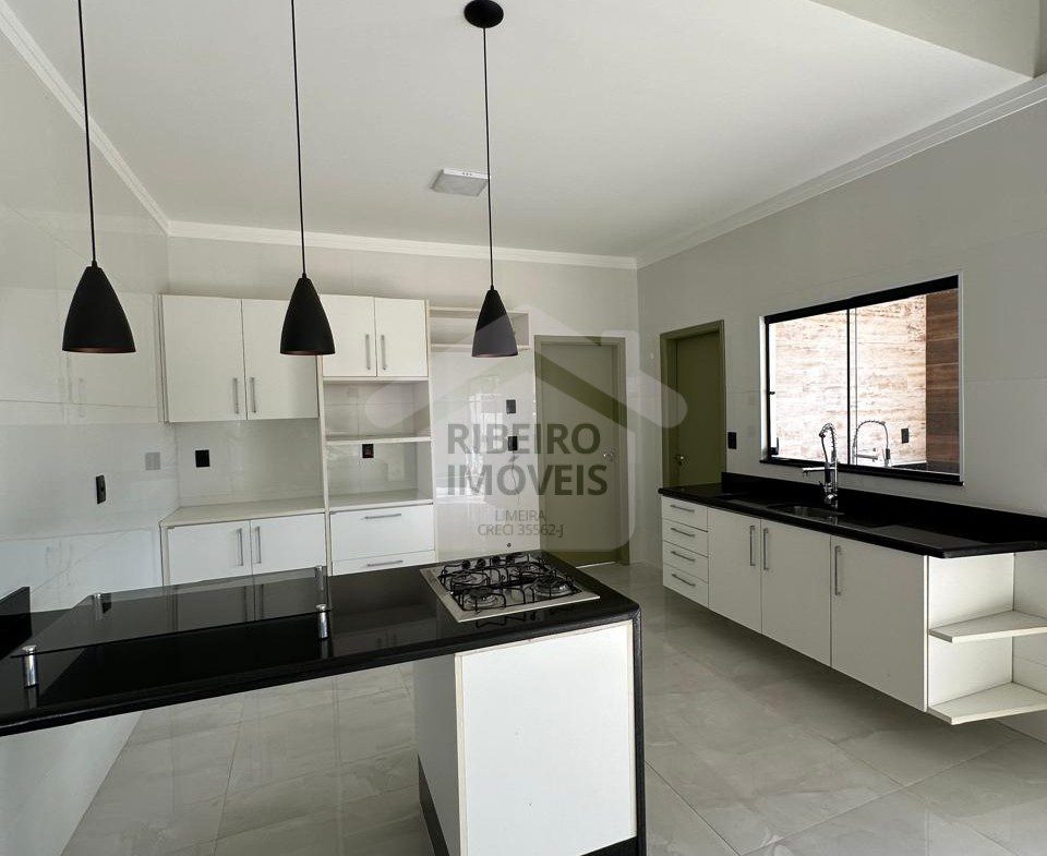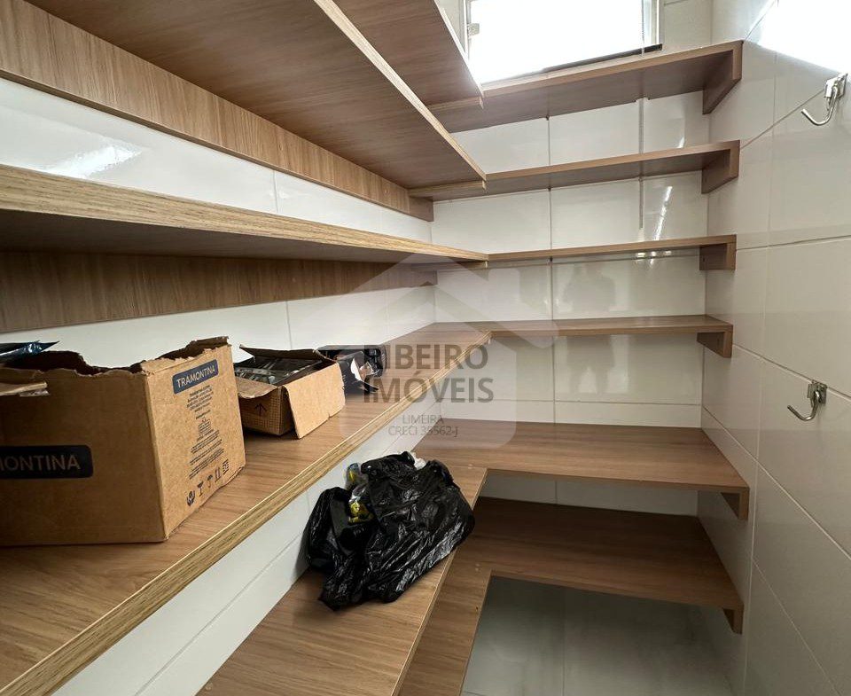 Sala para dois ambientes, cozinha, despensa, lavanderia coberta.