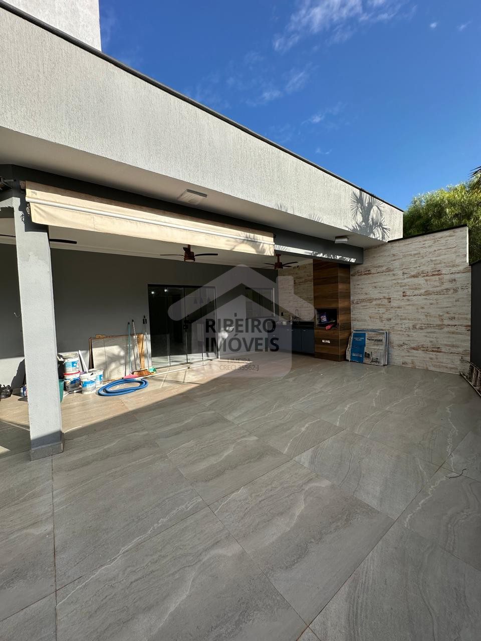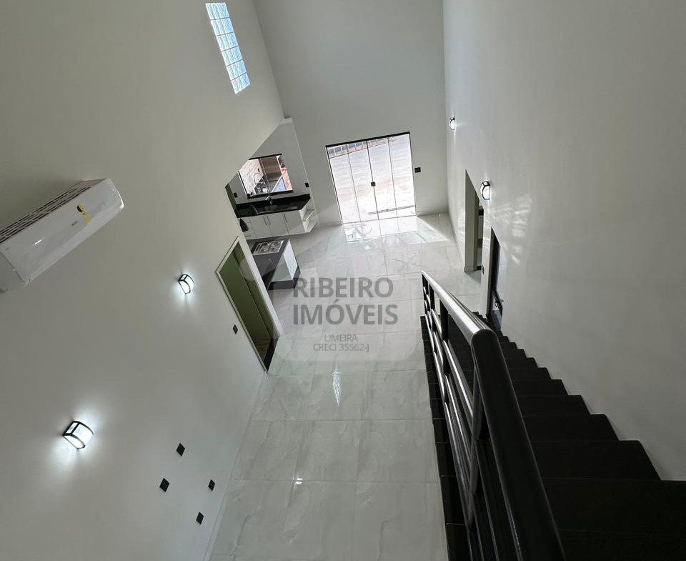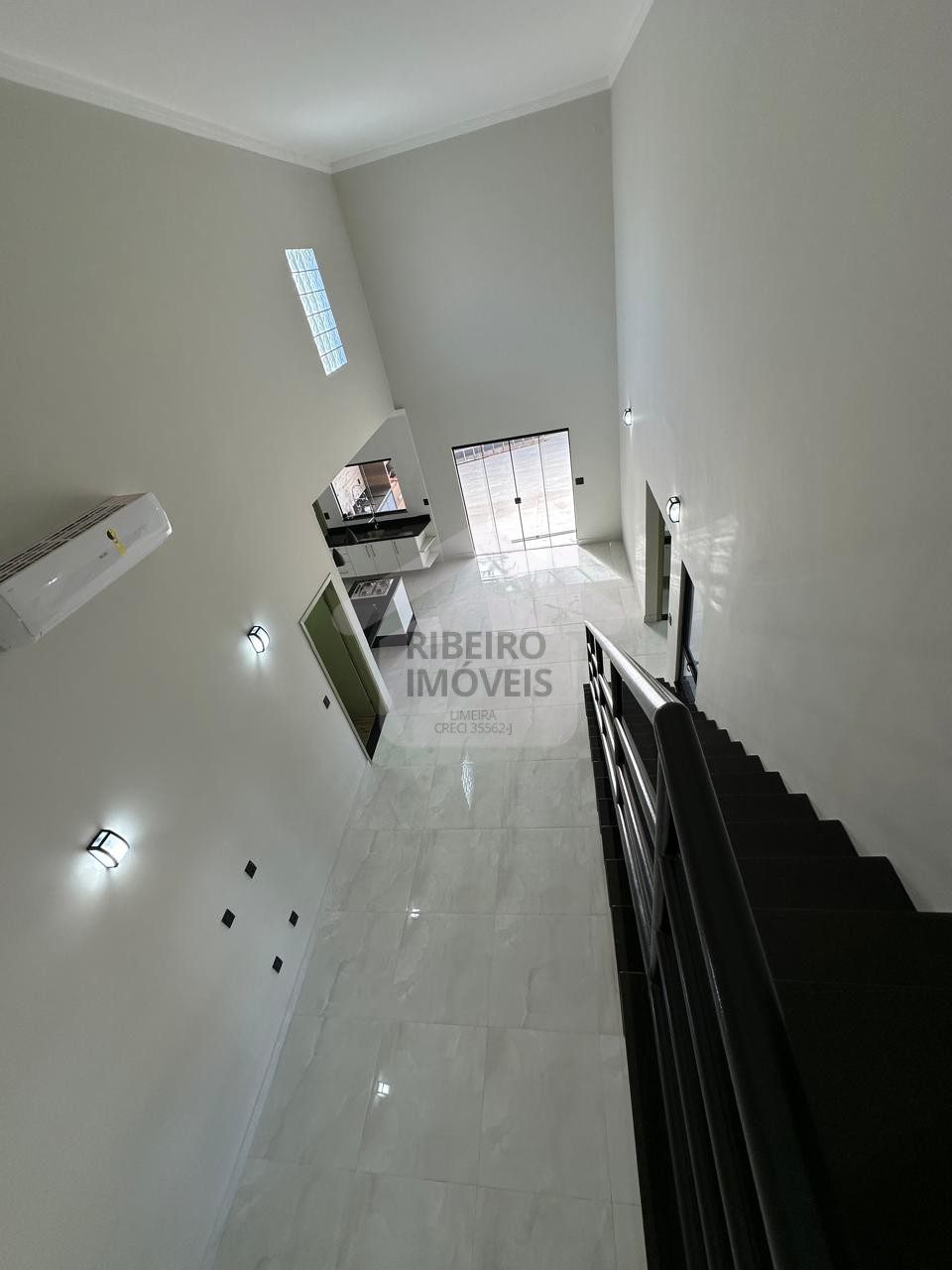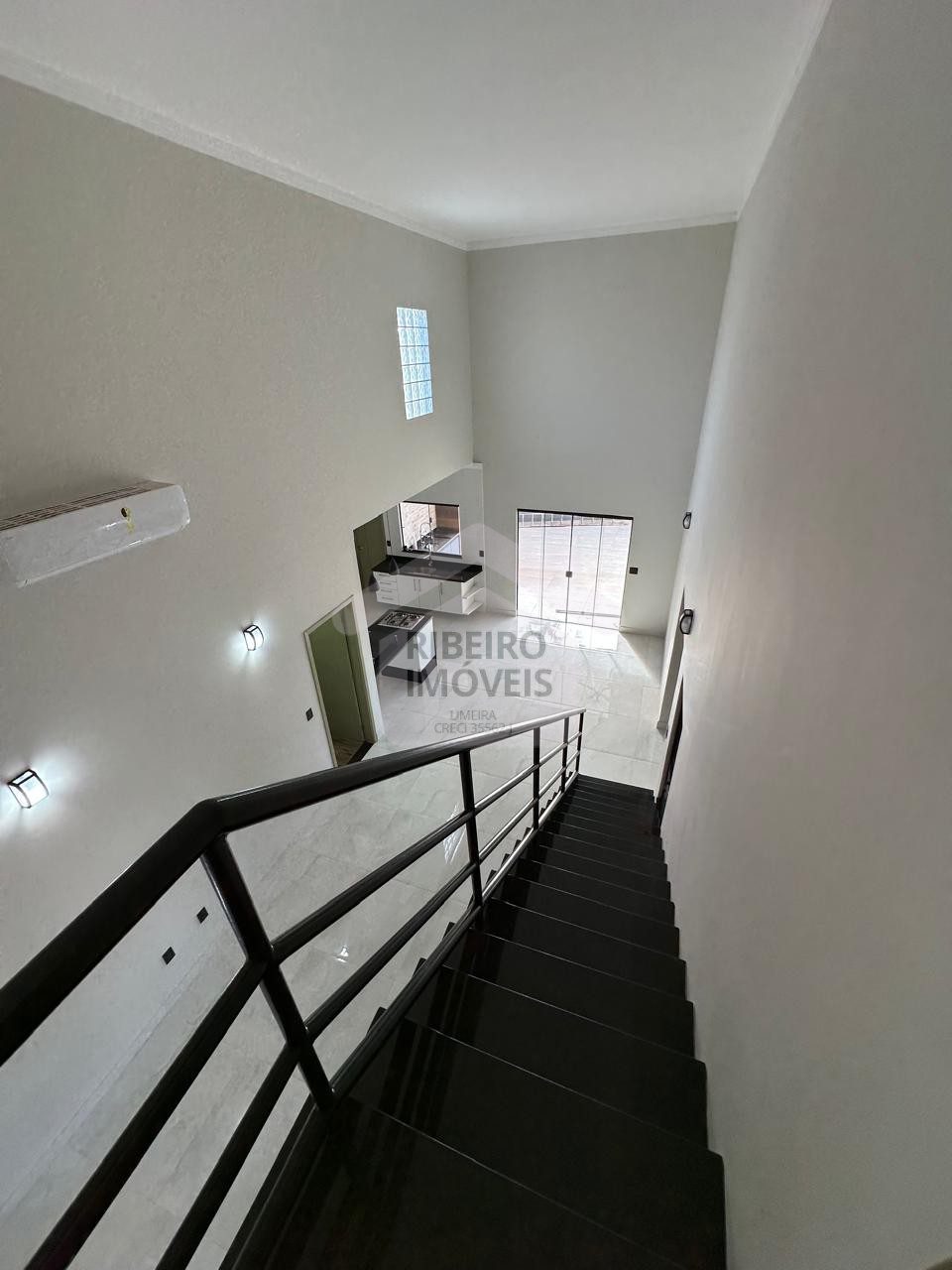 Sala para dois ambientes, cozinha, despensa, lavanderia coberta.